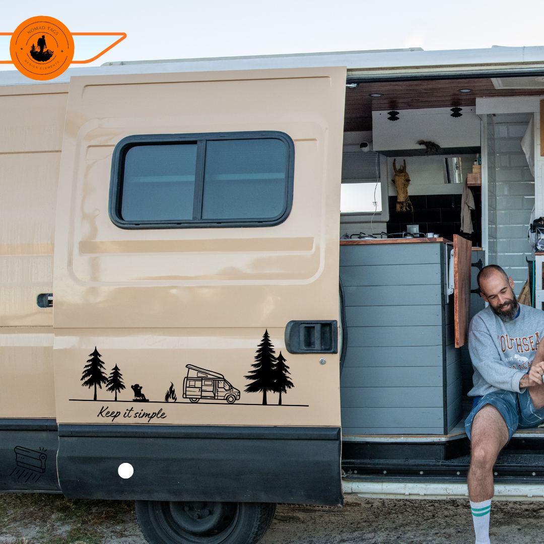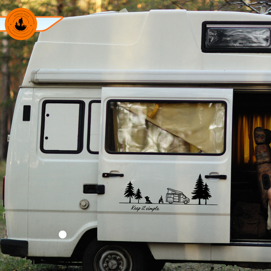 Der Aufkleber verleiht deinem Van Persönlichkeit, Charakter und einen hochwertigen Look, der auf jedem Campingplatz ins Auge fällt.