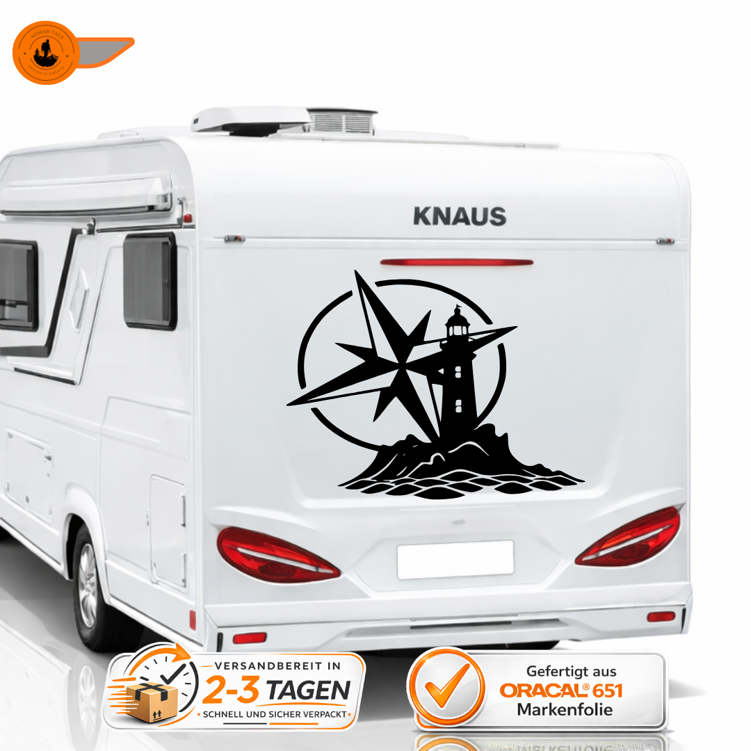 Camper Leuchtturm Kompass Aufkleber – Vanlife Wohnmobil Sticker aus Oracal Markenvinyl