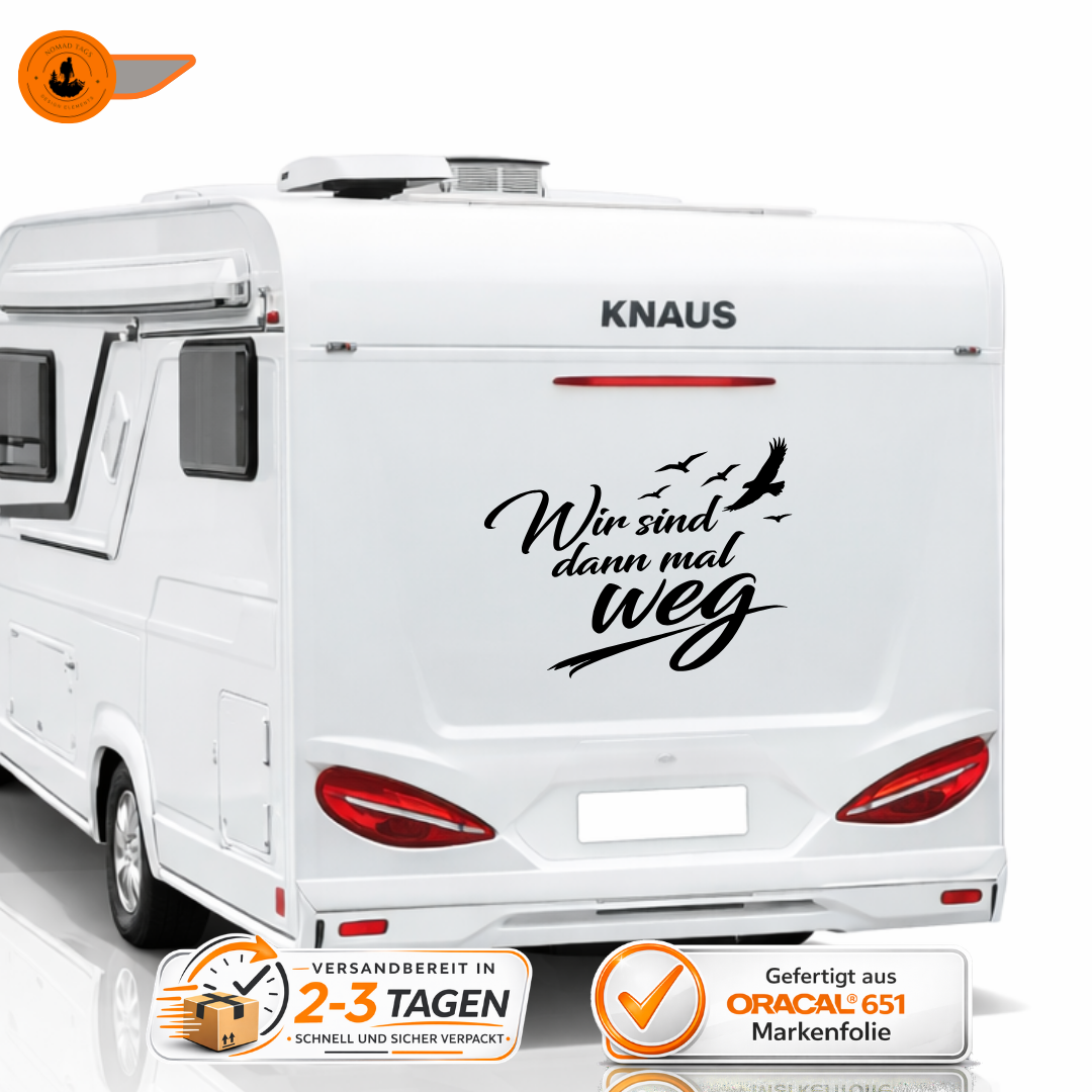 Vanlife Aufkleber „Wir sind dann mal weg“ – Camper Wohnmobil Schriftzug Sticker mit Möwen