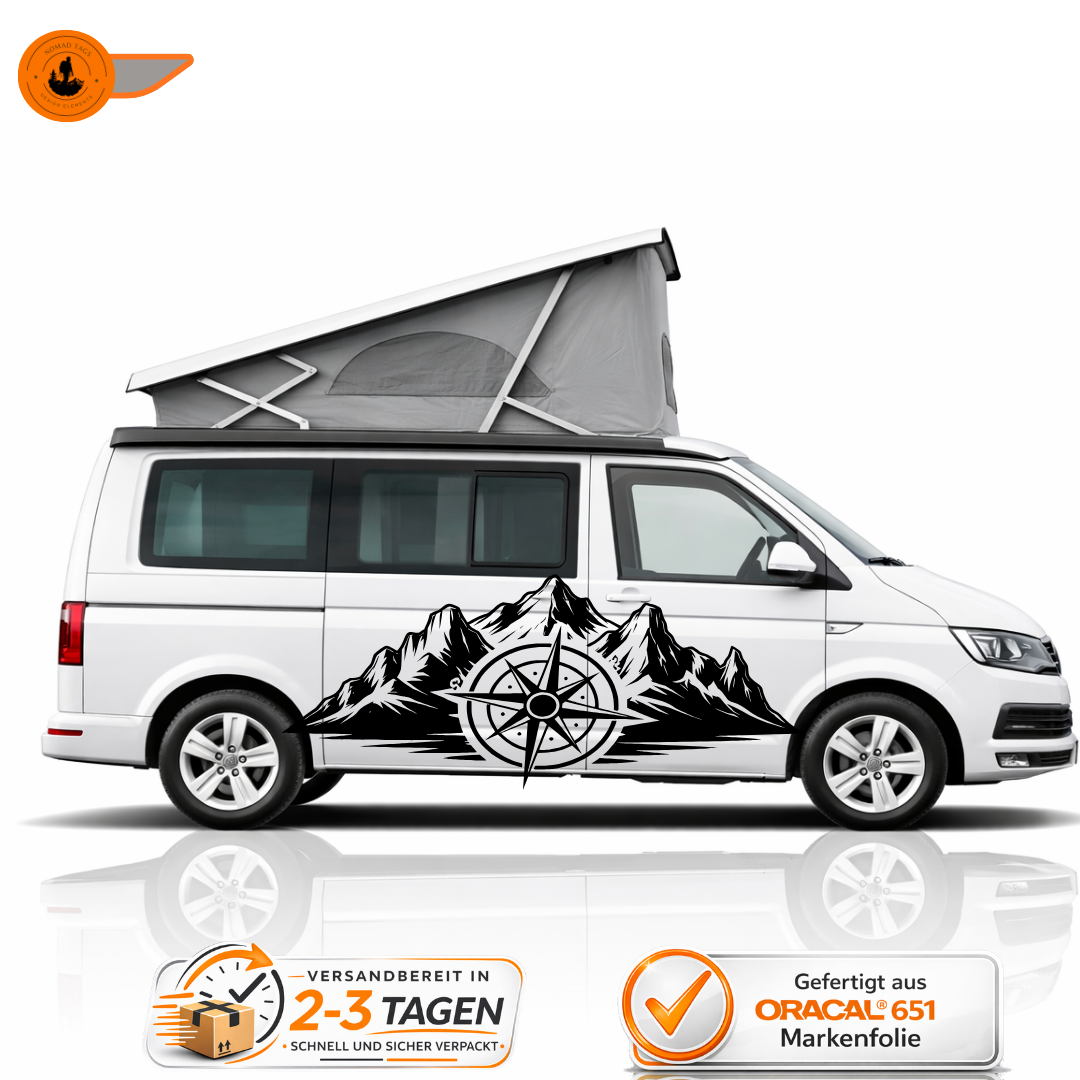 Berge Kompass Aufkleber – Outdoor Vanlife Sticker – Wohnmobil & Camper Vinyl ORACAL®